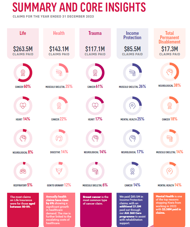 In addition to cancer, mental health claims have been increasing year on year, becoming one of the top reasons stopping New Zealanders from working. The growing awareness and recognition of mental health issues have led to more people seeking help and filing claims for related treatments and support. This trend underscores the need for insurance policies that adequately cover mental health services, ensuring that policyholders receive the care they need without financial stress.